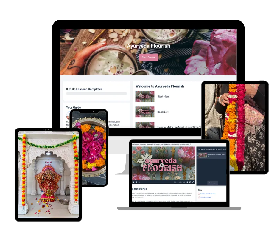 Ayurveda Flourish is a foundational program for women moving through life’s natural transitions — from maiden to mother, through midlife and beyond. As our bodies and energy shift, this course offers a grounded, feminine way to move with change rather than resist it.